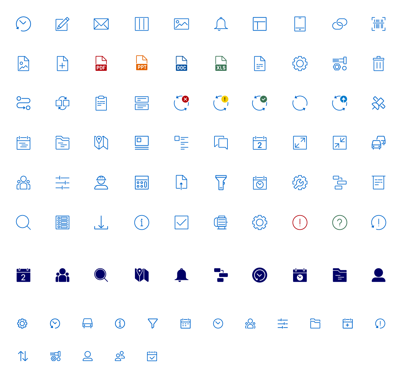 To make the icons look like a single visual family, they share the same unique elements from the ServiceMax logo.